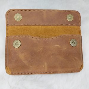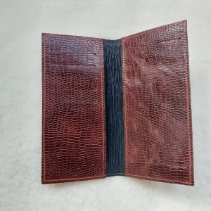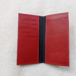 Chequera doble talonario y 5 tarjetas y 2 amplios espacios para papeles, dinero o documentos. Medidas 18.7×10 cm. aprox.