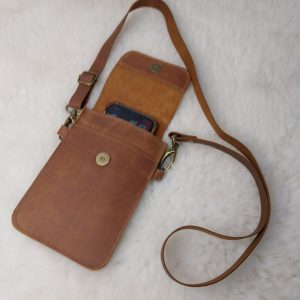 Porta celular para el cinturón en cuero engrasado color verde botella