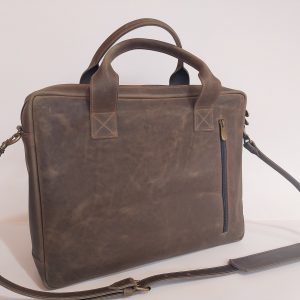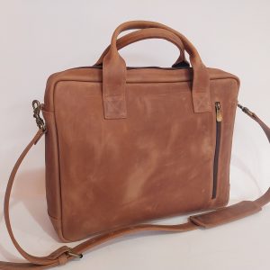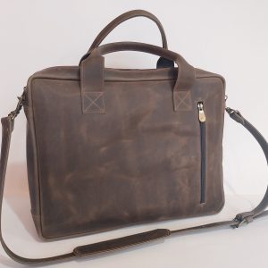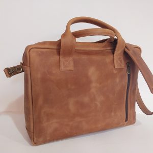 Bolso de cuero engrasado color cafe claro, azul piedra, verdey café con bolsillo en parte delantera e interior, tira larga ajustable. Entra muy bien un computador