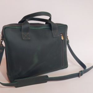 Funda de cuero engrasado color verde en medidas 35.7 cm largo x 24.0 cm ancho. Entra muy bien un computador de 15.5 pulgadas.