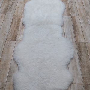 Piecera confeccionada en cuero de cordero lana corta, cuadros de 60×40 cm en estilo patchwork ,medidas 2.4×0.8 mt de largo.
