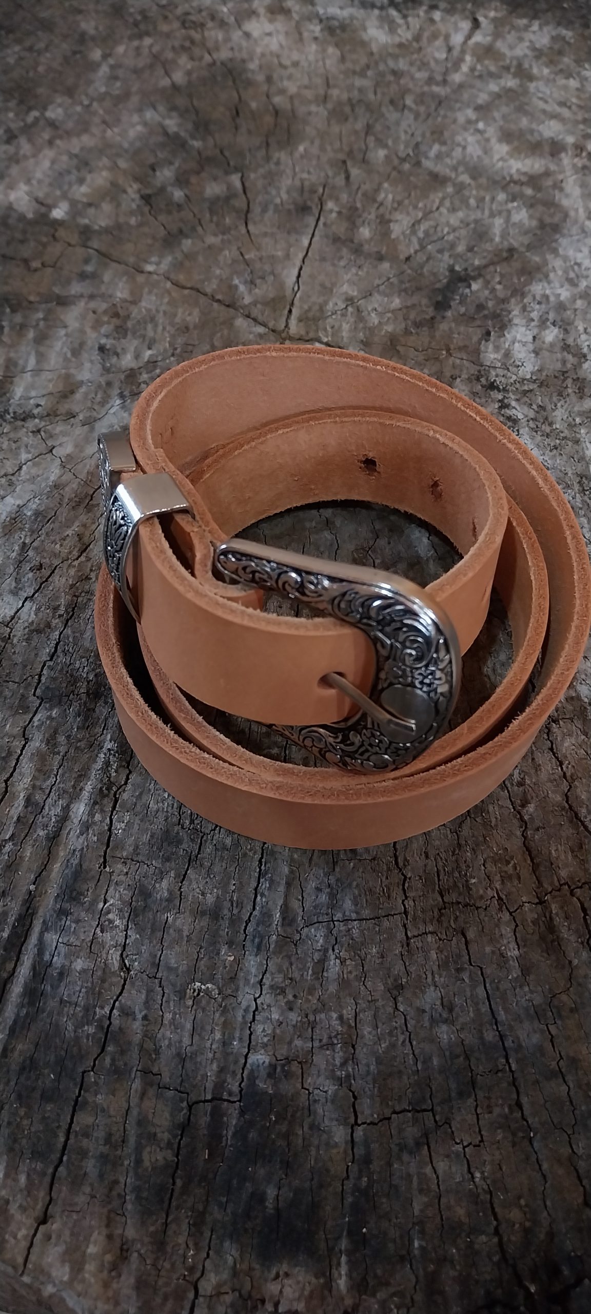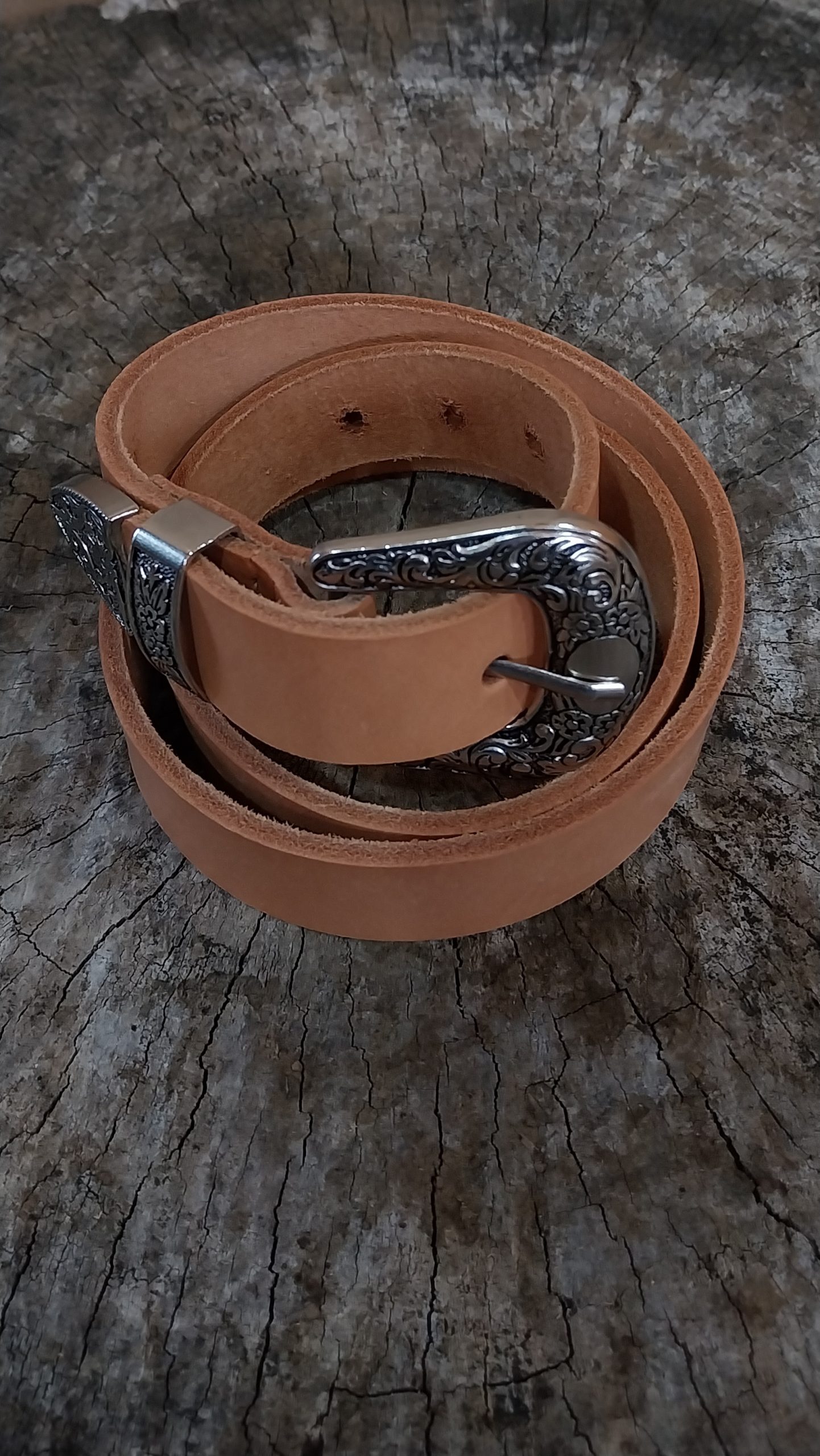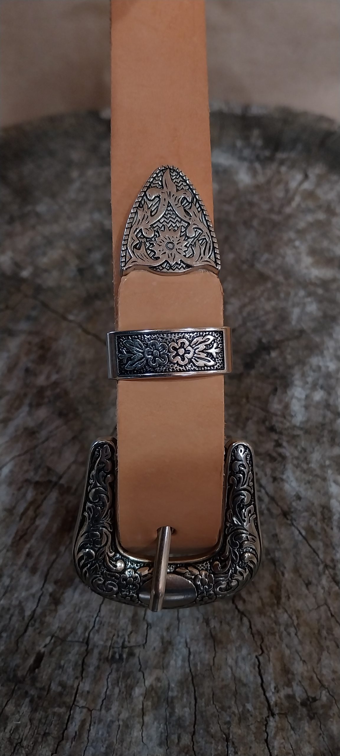 Cinturón 100% cuero, color natural, 3,0 cm ancho y 90 cm largo, hebilla con diseño de 5×5.5 cm