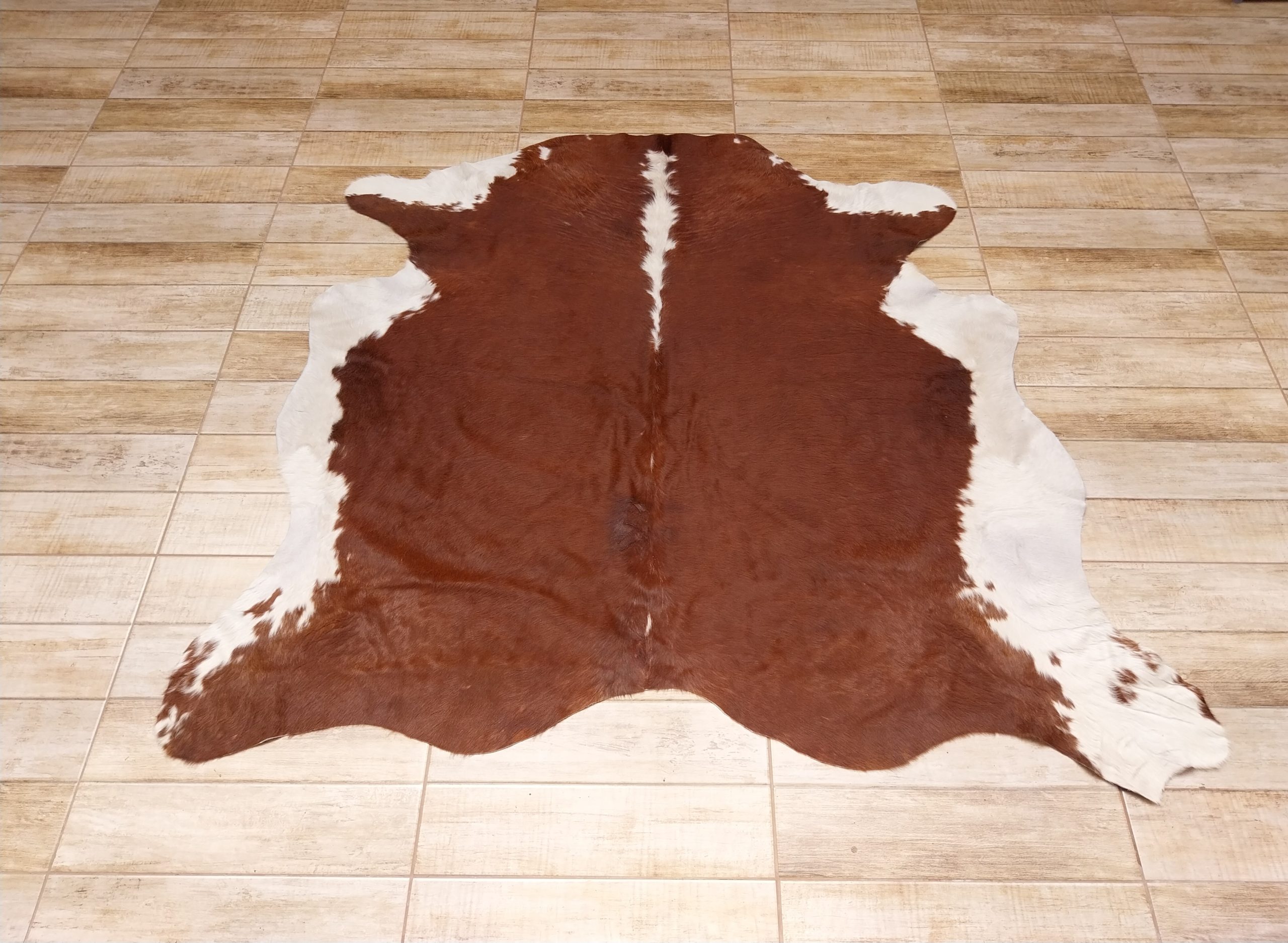 Alfombra de cuero de vacuno con pelo, medidas 1.88x 1.80 mts. aprox.