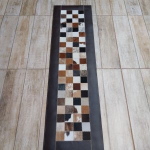 Cojín cuero natural de vacuno con pelos, Medidas 60X40 cm costuras a máquina zig – zag, reverso con tela de felpa y cierre para cambiar relleno.